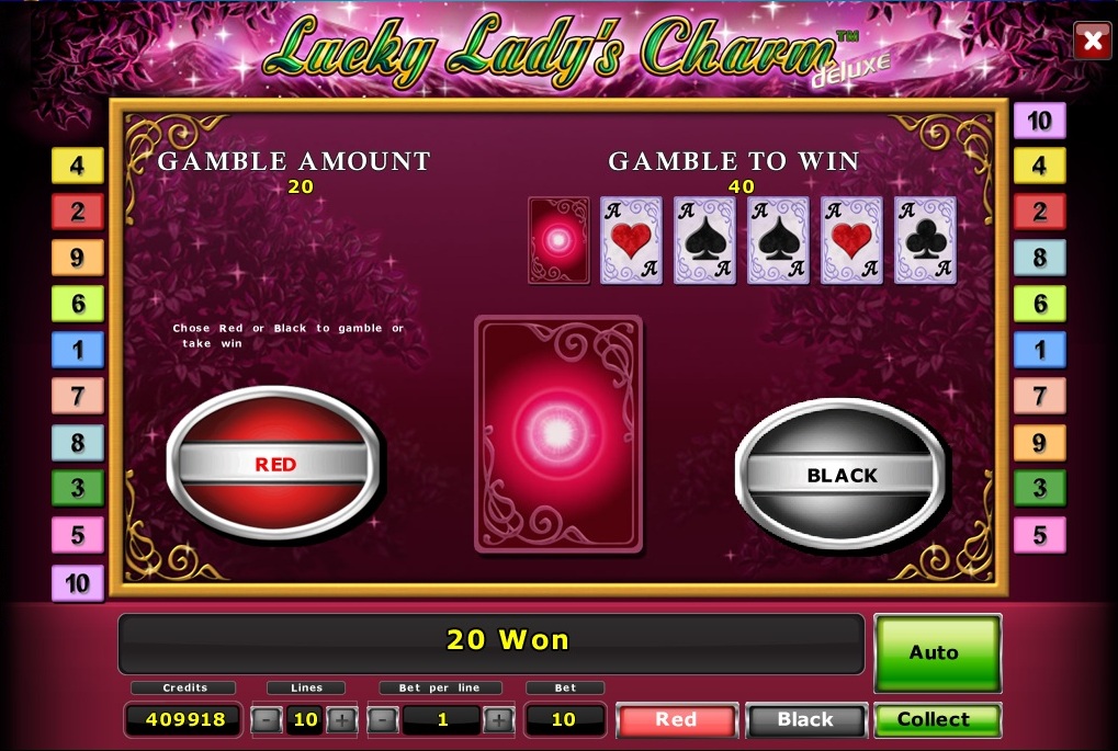 Playing lucky lade charm deluxe is 10 linear, 5-reel video slot with the possibility of doubling the prize and free spins. A roll of 3-5-scatter symbols start 15 free spins during which all wins are tripled.