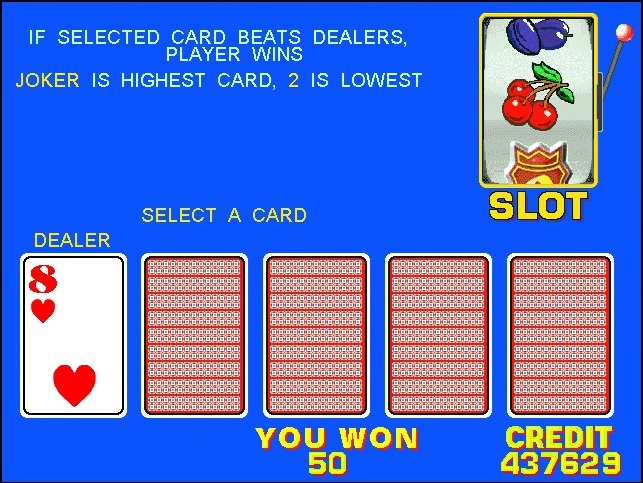 |  | Risk-win game to increase the mouth opening times e2 player cards more than the dealer. Number of attempt is displayed on the screen. A player can not stop risk game with the dealer up card. |  | A roll of 5 symbols "champagne" on an active payline bonus game begins. Choose 2 of 5 bottles to increase the prize | |