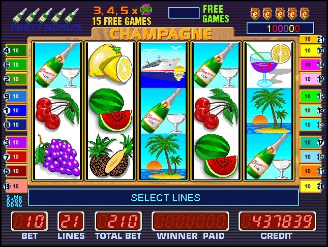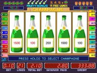 Play online slot machines Champagne Party not difficult. The game interface is represented by 21 active lines and 5 reels. Minimum rate - a loan, the maximum rate calculated for 10 lines or less. The game has several advantages in the form of bonuses and extra features. 3 dollar symbol - it is 15 free games, 5 characters. Champagne allow for bonus game. Additionally, you can double the risk and benefit. And the words of 5 characters "cube" to open the bonus dice.