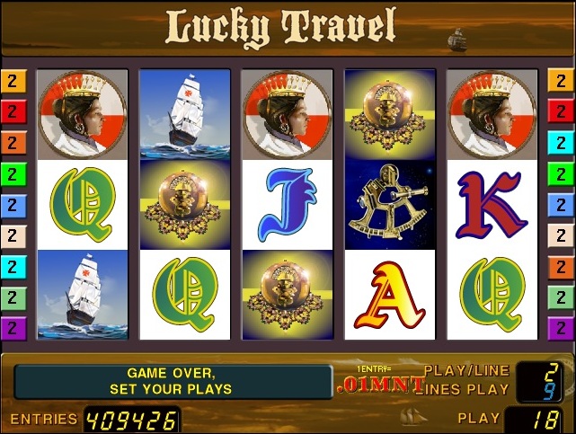 Lucky Travel Game is 5-reel 9 line slot with doubling his winnings and free spins. When slot reels of symbols 1,3,5 "The Ship" start 10 free spins. During the free spins symbols "ship replaces any other symbol in a winning combination