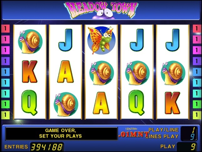 Meadow town™, another multi-line 5 reeler videogame uses animated sequences of bees, snails, moths and worms. When a combination of musical notes appear on the screen, the animation is triggered and this wins you 10 free games.
