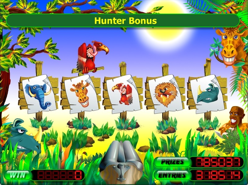 A roll of 3-5 character "Hunter" bonus game begins. In the bonus game you need to shoot at targets increase your winnings.