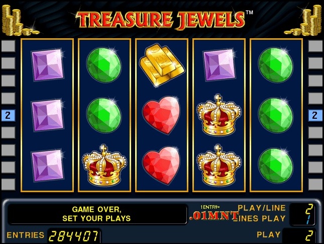 | - My dear, where is the lottery?- Grandma, we've got a slot, not a lottery. Go to kiosk for the lottery.- Here, you have balls with numbers!- This slot looks this way. Instead of symbols - balls with numbers. Animated. Only 5 lines, as in your lottery ticket, but the ball can fall directly on the entire reel. There is a Doubling game as well. Just as in your lottery, only hundred times more interesting, dynamic and with a good chance to win.- Well, that's all my money, what shall I roll? |  | Treasure jewels game is nine line five reel video slot with the possibility of doubling the risk of winning the game. Minimum rate - 1 Bet Max - 900 The main difference from other slot machines is the location of symbols in winning combinations, that is considered to be a winning combination of 3 identical symbols on an active pay line, but not necessarily pressed to the left. At loss of character "Chest" in a winning combination winning randomly multiplied by 1, 5 or 7. |  | At loss of any winning combination you have the opportunity to double your prize guesses the color of the dealer's cards | |